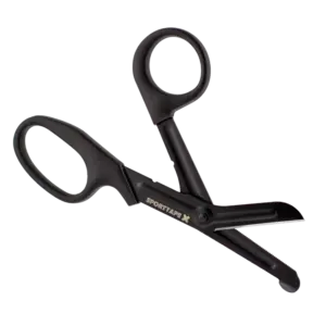 Tuff scissors for tough jobs. Designed for match-day emergencies and everyday first-aid. Get under tape (or clothing) and close to the skin using the hooked lip and rounded blade. Shear through fabric with the non-stick serrated edge.